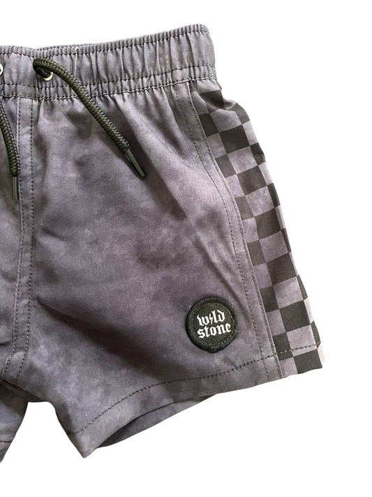 Acid Washed Checkered Board Shorts