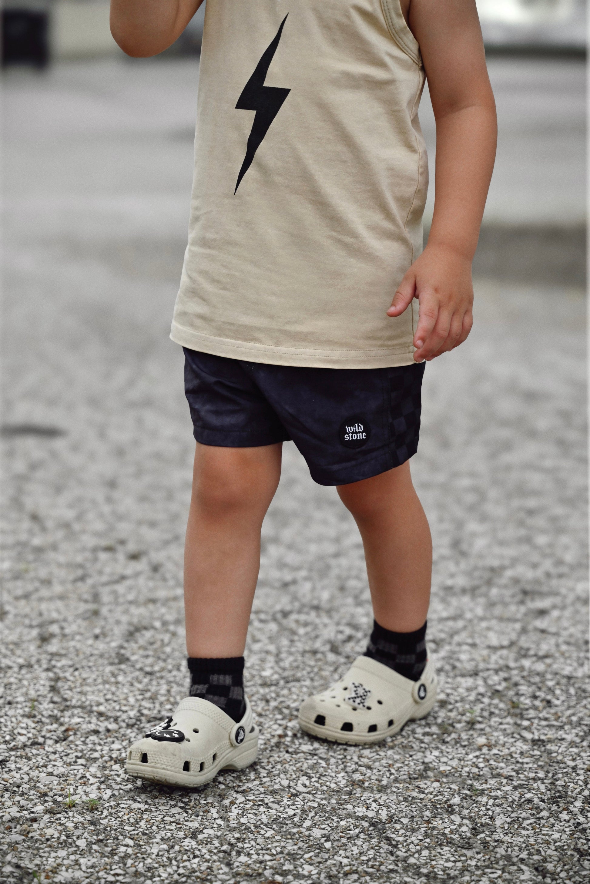 Conquer the waves with our Acid Checkered boardshorts! These gray acid wash hydro board shorts come equipped with built-in shorts for ultimate comfort. Dare to make a splash and ride the tides in style.