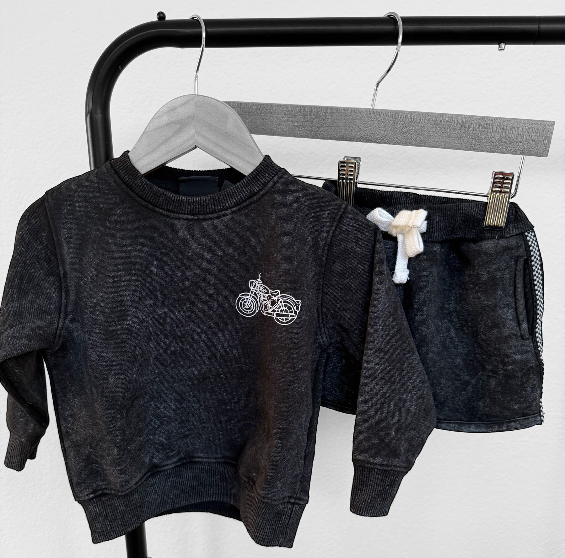 Pairs with our Moto Acid Wash Black Sweatshirt
