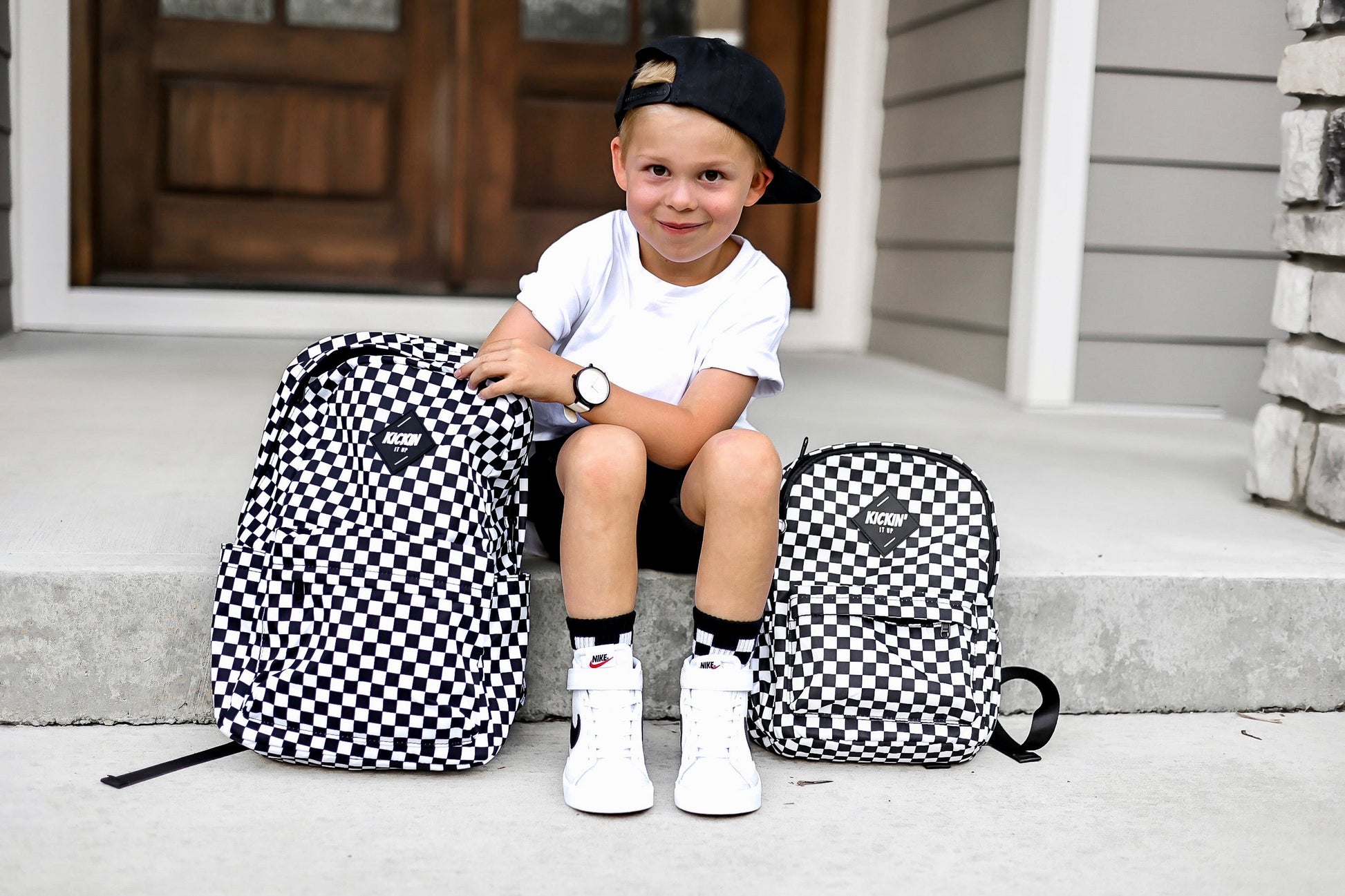 Full Size Black Checkered Backpack