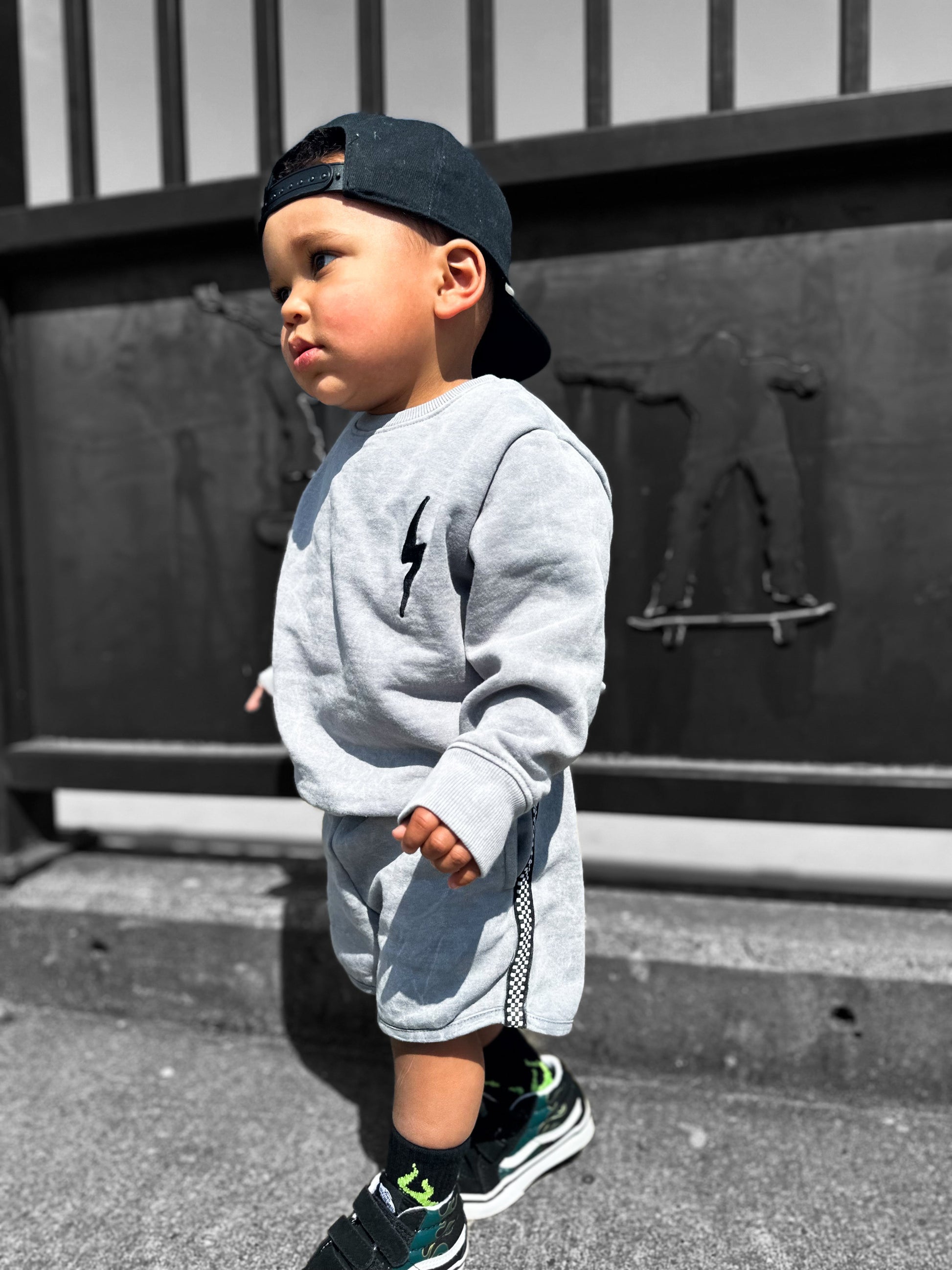 Our Grey Acid Wash Sweatshirt has been washed to perfection, this not-so-basic sweatshirt is as soft as ever. Accented with our signature lightning bolt, it's designed for the adventurous and free-spirited kids. Don't be basic, be bold! (Plus, it's super comfy.)