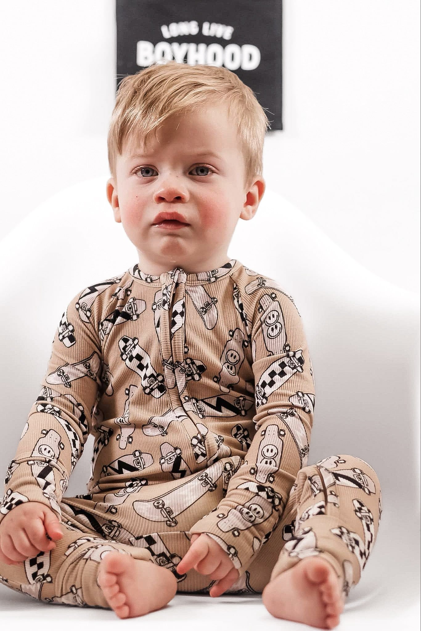 Our zip rompers are made with the softest ribbed bamboo and spandex blend, designed to last 3x longer than your average baby clothes. They feature fold over cuffs to protect those tiny hands and feet, a double zipper for easy diaper changes, and printed tags to avoid irritation.