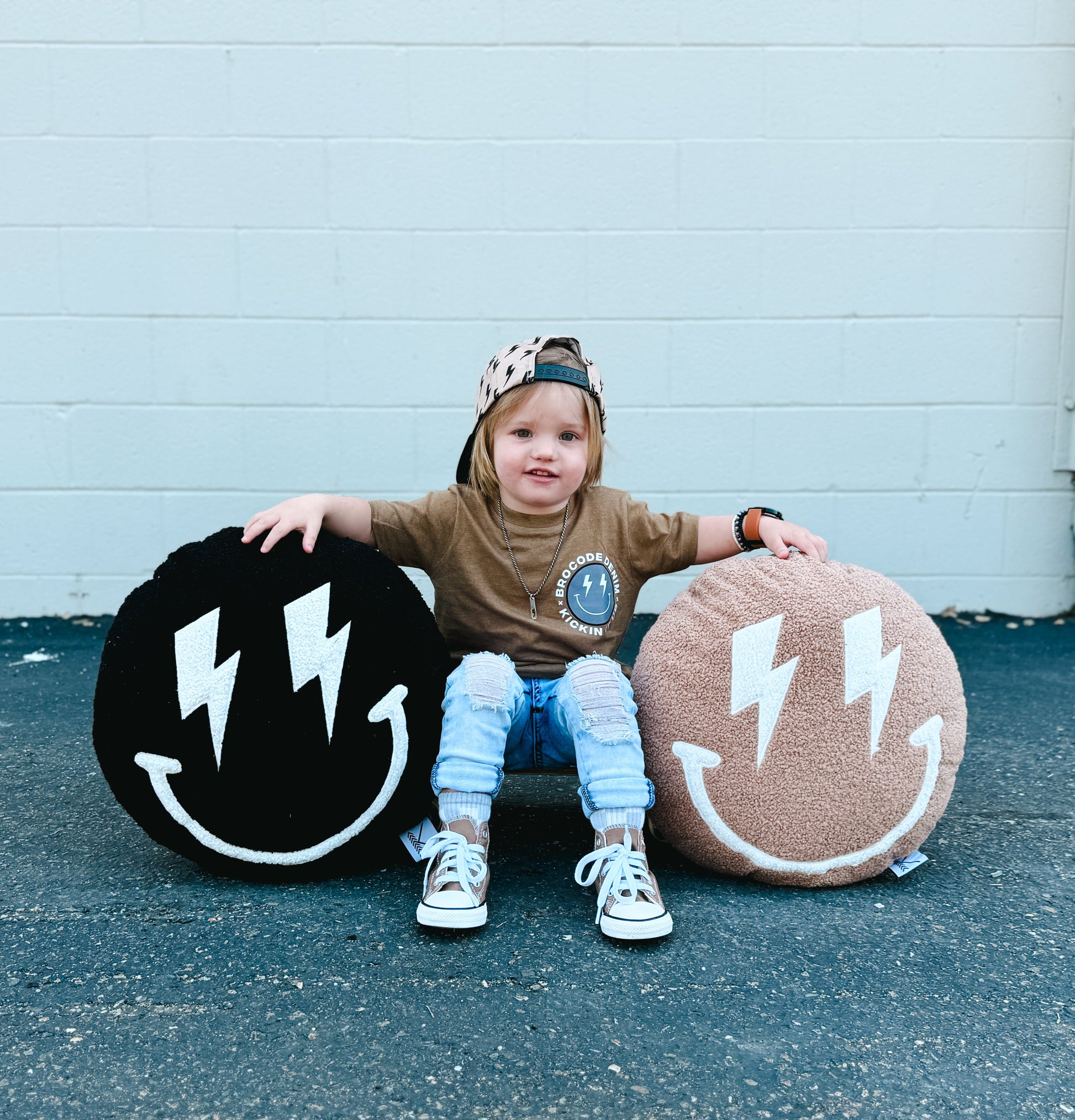 Calling all the cool kids to our cool smiley plush pillow! The perfect cuddle pillow for car rides or daycare. Stay hip, stay rad + stay cool even when sleeping.